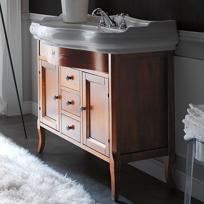 Тумба напольная (база) 100см, с прямым фасадом, под раковину 1050, цвет: noce (орех), ручки: керамика KERASAN Retro 7347 (734740)