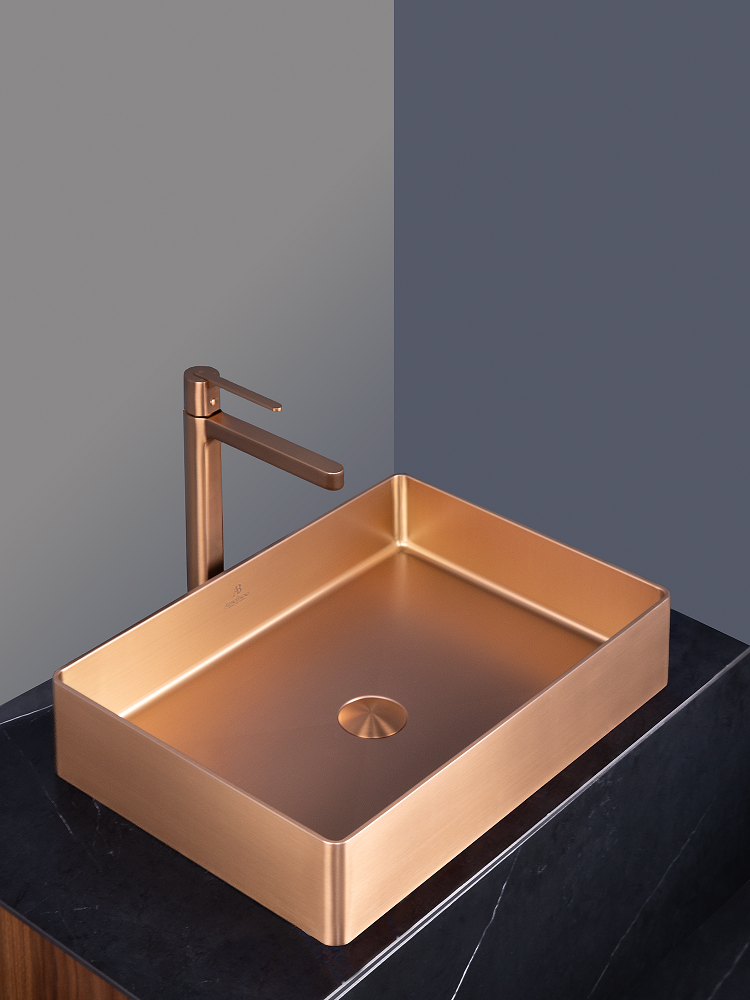 Раковина накладная прямоугольная 514х365х102 мм AltroBagno Astro 001019 RaSp из нержавеющей стали, с донным клапаном, цвет медь матовая