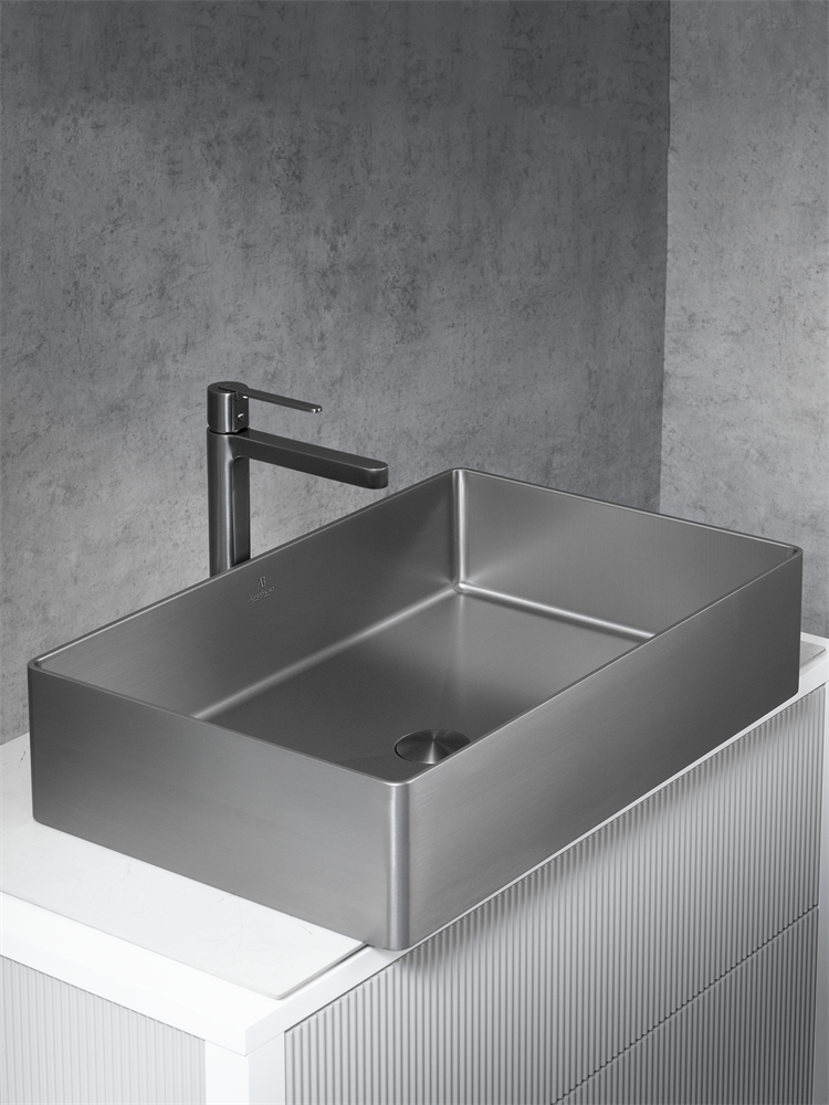 Раковина накладная прямоугольная 60х40х14 см AltroBagno Solido 001022 MtGr из нержавеющей стали, с донным клапаном, цвет графит (вороненая сталь)