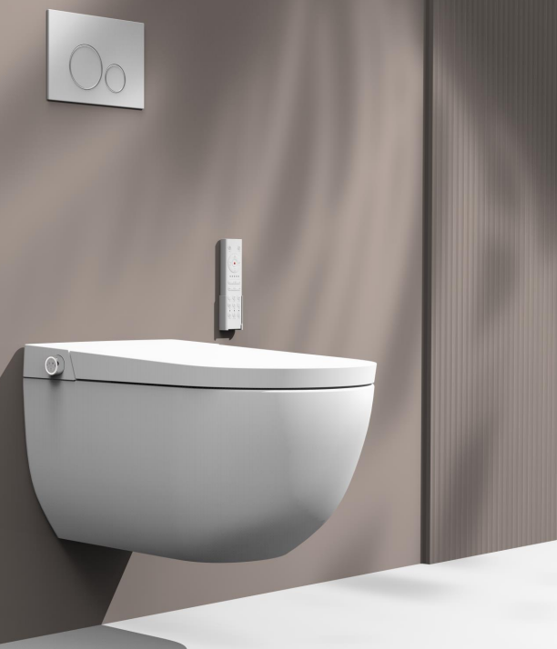 Вид унитаз-биде с системой инсталяции с клавишей смыва