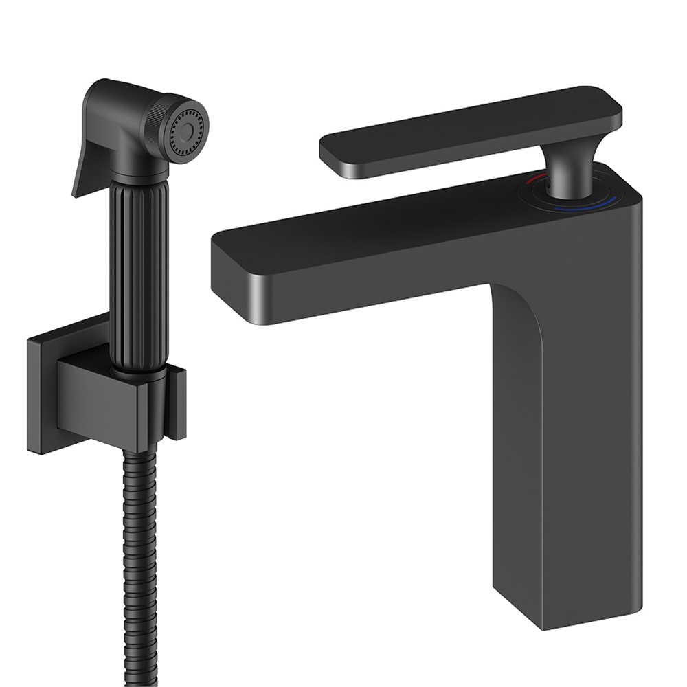 Смеситель для раковины с гигиеническим душем TIMO (Тимо) Torne цвет черный матовый (4360/03G)