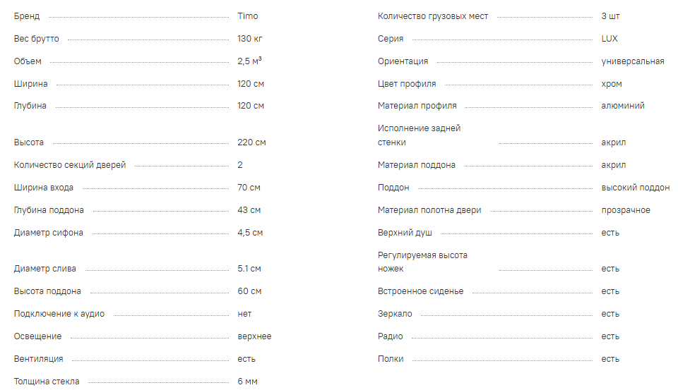 Душевые кабины Timo LUX - минимум стекла и максимум акриловых поверхностей. Такое конструктивное решение несет в себе ряд преимуществ: позволяет осуществлять быстрый и легкий уход за душевой кабиной, являются эталоном надежности, долговечности, удобства и безопасности.